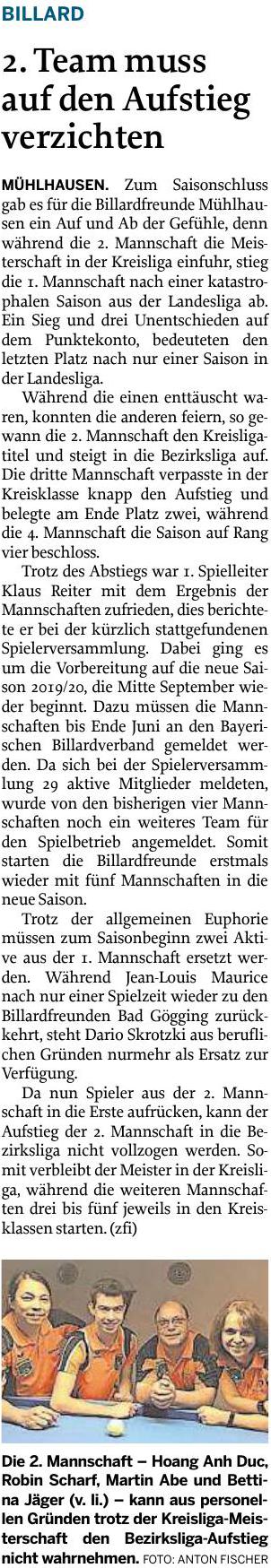 18.06.2019 - Zweites Team muss auf Aufstieg verzichten